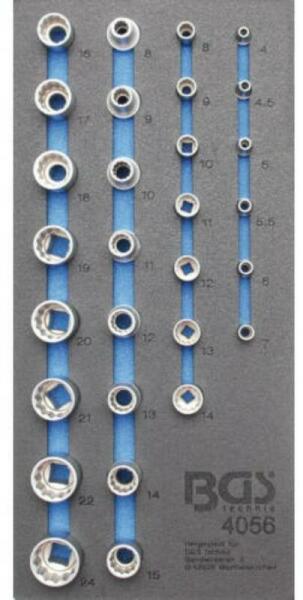 BGS Technic Műhelykocsi-betét 1/3: Dugókulcsok | tizenkétszögletű | 29 darabos - BGS 4056 (BGS 4056)