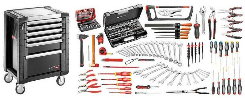 FACOM Ipari karbantartó szerszámkészlet szerszámoskocsival, 169db-os Jellemzők: