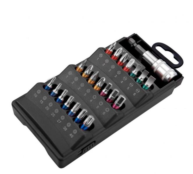 A termékhez tartozó katalógus oldal megtekintéséhez  KATTINTSON IDE . A termék adatai a grupatopex. com oldalon IDE KATTINTVA érhető el. Csavarhúzó bitek, műanyag tartódoboz övklipsszel, PH1, PH2 x 2, PH3, SL4, SL5, SL6, PZ1, PZ2 x 2, PZ3, HEX4, HEX5, HEX6, TX10, TX15, TX20, TX25, TX27, TX30, TX40, 22 db-os készletA GRAPHITE csavarhúzó-bit készletben a legnépszerűbb 1/4" x 25 mm-es bitek kaptak helyet. A tárolódoboz megfelelő kialakítása lehetővé teszi rögzítését szerelőöveken bittartóként. Az egykezes bit kitoló és visszahúzó rendszer jelentősen megkönnyíti a bitekhez való hozzáférést és cseréjüket. Az egyes bitek színes gyűrűi igen megkönnyítik az éppen szükséges bit azonosítását.