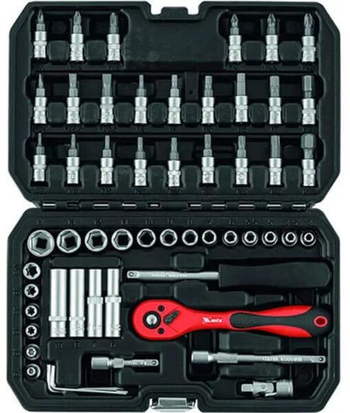 Szerszámkészlet 1/4 hüvelykes, műanyag tokban, 56 darab CrV acélból készült elembõl áll, és menetes kötõelemek meghúzására és lecsavarására szolgál.