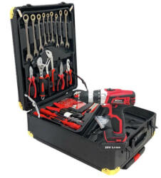 Straus 396 részes dugókulcs szerszámkészlet + 20V akkus fúró STCDG396 1. polc9db kombinált villáskulcs: 8-9-10-11-12-13-14-15-171db 6 csípőfogó1db 8 állítható fogó1db 9 vízpumpa fogó1db 6 laposfogó1db 6 kombináltfogó2. polc6db precíziós csavarhúzó9db imbuszkulcs1db mágneses felvevő1db fázisceruza1db vágókés3db csavarhúzó: (+)4x100mm, (-)4x100mm, (-)5.5x125mm1db 3.0 vezeték blankoló fogó1db szigetelőszalag251db szög3. polc1db 1/2 racsnis villáskulcs1db 1/4 racsnis villáskulcs15db 1/4″ dugókulcs: 4-14mm14db 1/2″ dugókulcs: 8-30mm2db gyertyakulcs: 16mm, 21mm2db toldó: 1/2″ & 1/4″2db T-kulcs: 1/2″ & 1/4″3db hosszabbító toldó: 1/2 x 5, 1/4 x 2, 41db 150mm rugalmas hosszabbító toldó1db 1/4″ 150mm behajtó nyél4. polc24db bitfej10db 50mm hosszú bitkészlet1db bit tartó2db kiegészítő1db lyukfűrész tüske4db lyukfűrész: 32, 38, 44, 543db lapos fúrószár fához: 13, 16, 205db lapos fúrószár: 4, 5, 6, 8, 104db lapos fúrószár: 4, 5, 6, 88db HSS fúrószár titán bevonattal: 1.5, 2, 2.5, 3, 4, 5, 6, 81db akkus fúró1db akkumulátor (akkus fúróhoz)1db töltő (akkus fúróhoz)1db alumínium tok 20V akkus fúró jellemzői: feszültség: 20Vfordulatszám: max. 1350 /percakkumulátor: Lithiumtokmány maximális befogómérete: 10 mmmaximális csavarátmérő: 8 mm